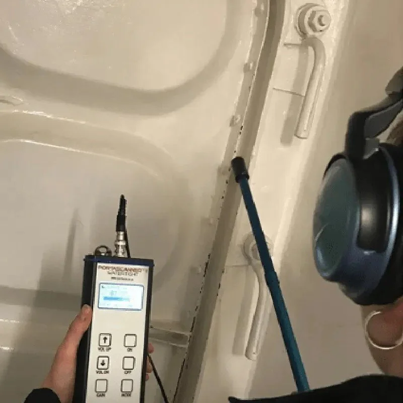 This portable ultrasonic device is designed to check the integrity of watertight and weathertight seals on hatch covers, doors, and multi-cable transit systems in marine environments. It is lightweight, handheld, and allows a single operator to quickly inspect multiple hatches and seals in one efficient session.